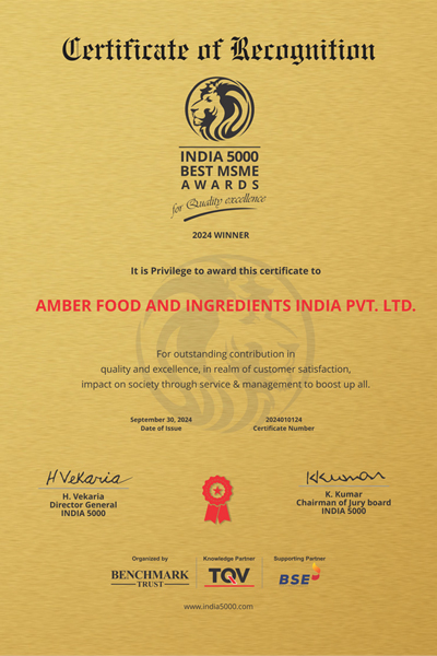 Amber food and ingredients India pvt ltd was started in July 2012 @ coimbatore